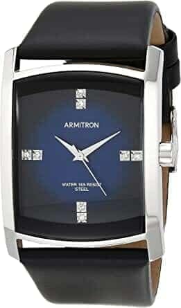 11.Armitron Men’s Rectangular Swarovski Leather Strap Watch: